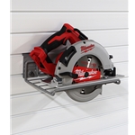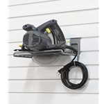 12″ Shelf with Cord Holder is a perfect complement to your StoreWALL accessories. Keep your power tools with sharp blades out of reach of children and keep your blades protected with this unique wire shelf. The body of the power tool sits on the shelf, yet the circular or straight blade slides beneath the shelf. There is even a convenient hook attached to keep the cord tidy.