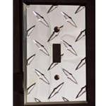 Our Diamond Plate Aluminum Light Switch and Outlet Cover Wall Plates are a quick way to dress up an otherwise ordinary area. These covers are unique on the market as they are **CNC machined from solid Aluminum stock**, no bent sheetmetal here! They have the sharpest lines, tightest corners and finest detail of any cover available, hands down.